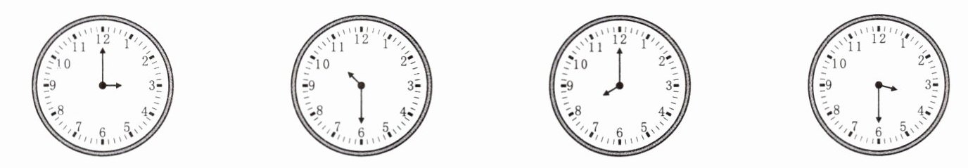2. 下面钟面上时针和分针所成的角分别是什么角?填一填。