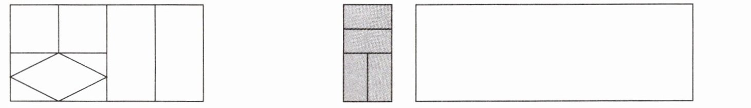 (2)用4个长方形拼一个新图形。用4个长方形拼一个新图形(在答题卡上画出,比如将4个长方形拼成一个大长方形,4个长方形两两并排,再将这两排上下拼接;或拼成“田”字形状等,以下以拼成大长方形为例画出图形 )。(画出:四个长方形排成两行两列,组成一个大长方形 )
