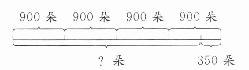 2. $900×4+350 = 3950$(朵)