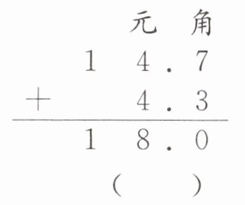 $\begin{array}{r} 1\ 4\ .\ 7\\ +\ \ \ 4\ .\ 3\\ \hline 1\ 8\ .\ 0\end{array} $