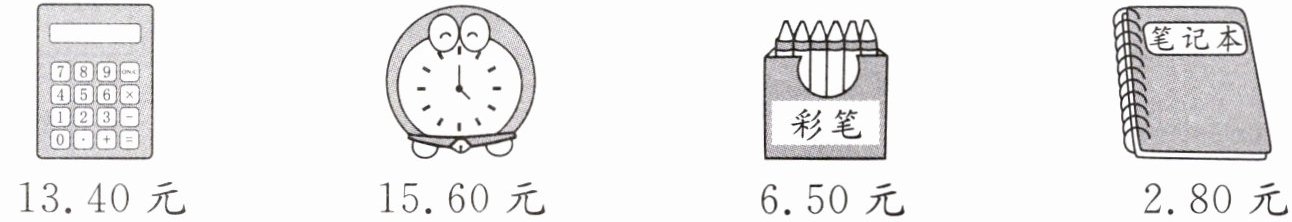 (1)1本笔记本比1盒彩笔便宜多少元?