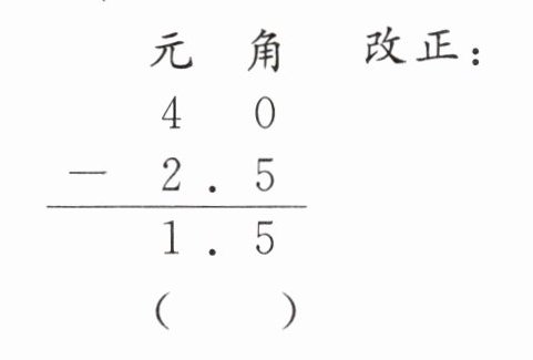 $\begin{array}{r} 4\ 0\\ -\ \ 2\ .\ 5\\ \hline 1\ .\ 5\end{array} $