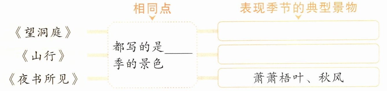 四 新思维 菲菲用导图的形式梳理了本课的三首古诗,请你补充完整。