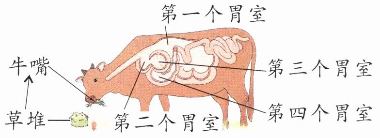 青头又跳到牛身上,隔着肚皮和红头说话:“红头!不要怕,你会出来的。我听说牛的胃有四个胃室,前三个主要是储存食物的,第四个才是管消化的!”