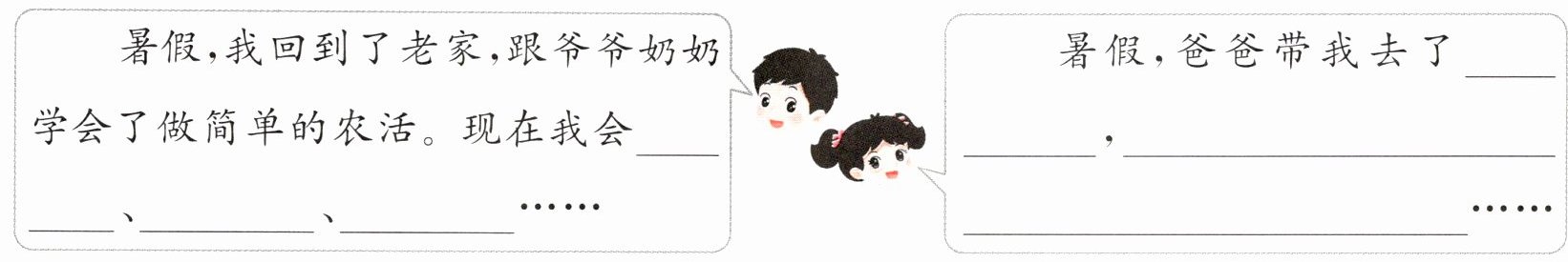 三(1)班正在召开“我的暑假生活”主题班会,请你把同学们的对话补充完整。