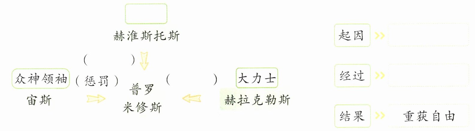 1.赫淮斯托斯对普罗米修斯说,只要普罗米修斯向宙斯承认错误,归还火种,他一定请求宙斯饶恕普罗米修斯。 2.动作 语言 顽强不屈 勇敢无畏