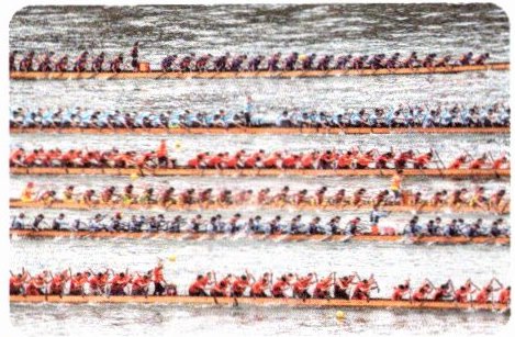 迅速发力,整齐划一地挥动船桨 瞬间如离弦的箭一般冲出起点 双臂抡圆,鼓槌在空中划出完美的弧线 随着急促的鼓点挥桨,动作快得让人眼花缭乱 已经暴起青筋,却仍在一遍遍喊着号子激励队友