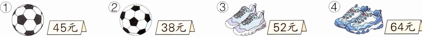 4.45>38 52<64所以应该买②号足球和③号鞋子。120-38-52=30(元)