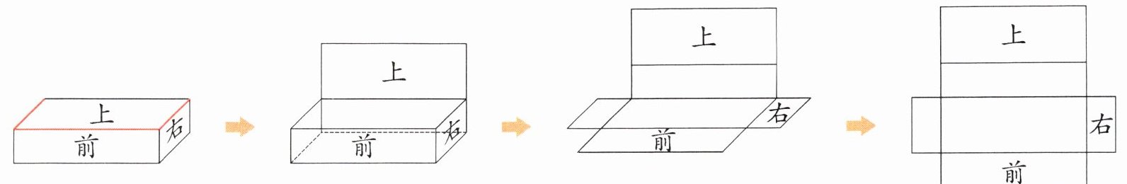 (2)在最后的展开图中标出长方体的后面、下面和左面。在长方体的 6 个面中,左面和(