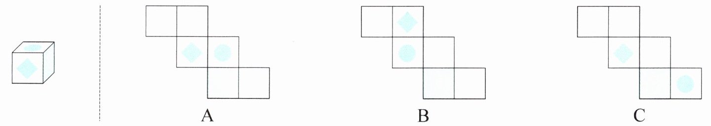 A 【解析】A 选项中,菱形、圆形和空白面三个面相邻,将展开图还原成正方体,当圆形是上面时,空白面是右面,菱形是前面,故 A 选项符合题意。B 选项中,菱形与空白面相对,故不符合题意。C 选项中,菱形与圆形相对,也不符合题意。