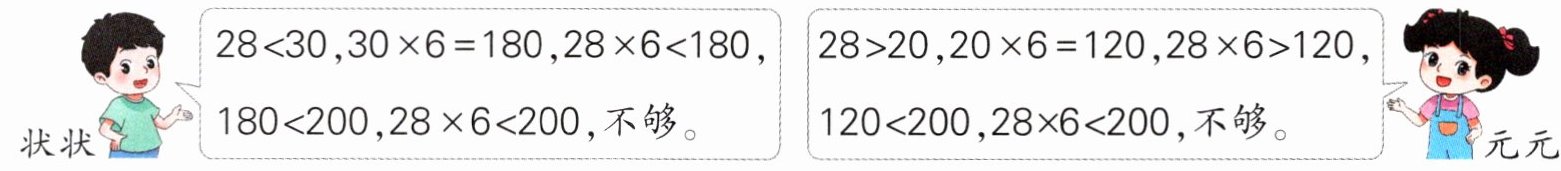2 广州玉雕技艺历史悠久,闻名中外。现某玉器厂接到制作200个玉器的订单,要想6天做完,每天做28个玉器够不够?下面是两位同学的解答过程,正确的是(