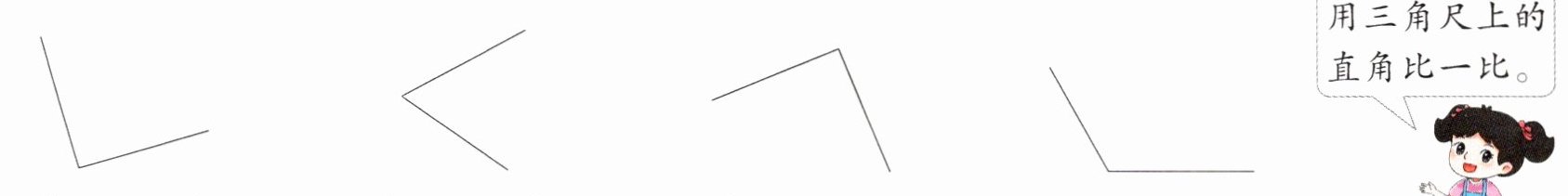 [解析]解决此类问题时,可以运用尝试法。先确定画的线段的方向,尝试画出线段,再用三角尺上的直角比一比,看增加了几个直角,从而确定对应的是哪种情况。如下图所示,可以从左往右竖直画线段。