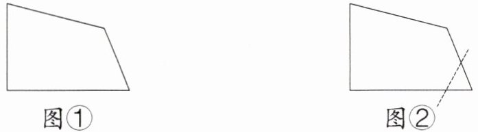 3 (1)图①是由( )条线段围成的,有( )个角。如果沿虚线剪一刀(如图②),那么这个图形左边剩余部分还有( )个角。如果要求剪一刀后图形剩余部分角的个数减少,那么该怎样剪? 在图①中用虚线表示出来。