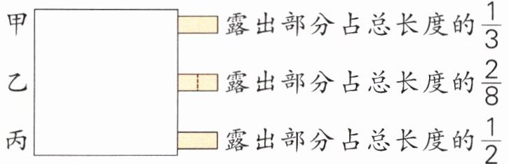 [解析]已知纸条甲露出部分占总长度的$\frac{1}{3}$,就是把纸条甲平均分成3份,露出部分占其中的1份。还原纸条甲的长度,画图为