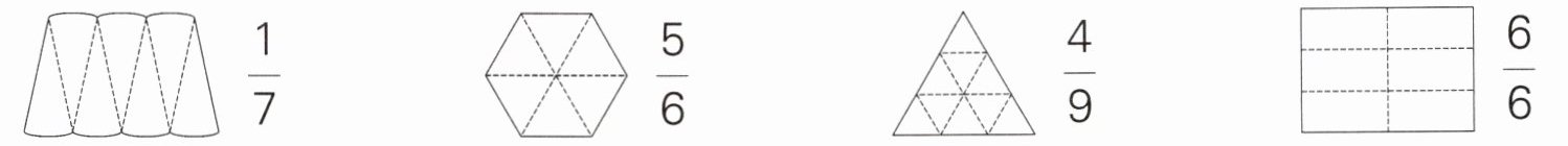 该图形被平均分成了$6$份(分母为$6$),分数为$\frac{6}{6}$,根据分数的意义,分子是$6$,所以需要涂满整个图形($6$份)。