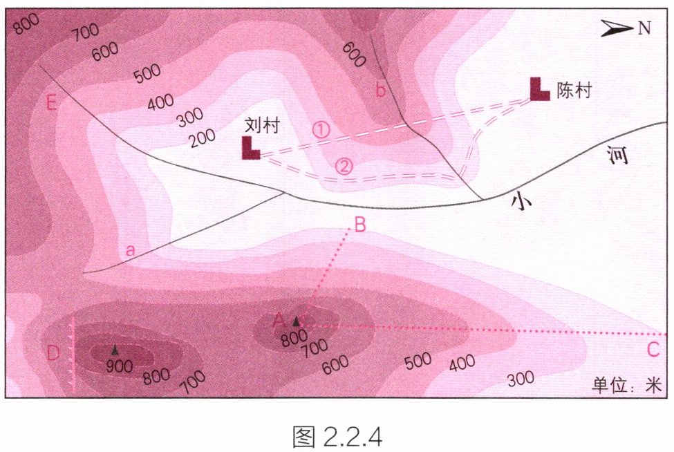 图 2.2.4 为某区域等高线地形图。读图并完成下列各题。