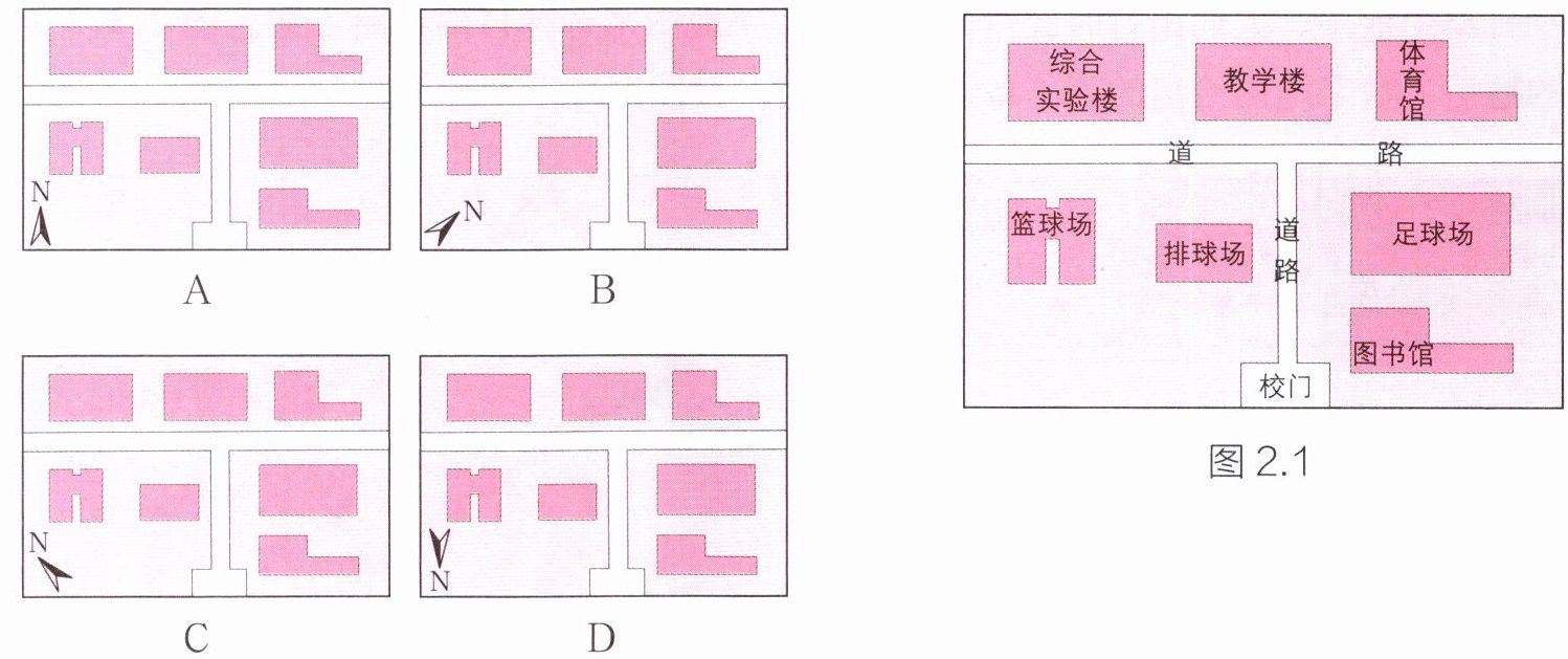 图2.1为某学校制作的“学校平面示意图”。据此完成1~2题。