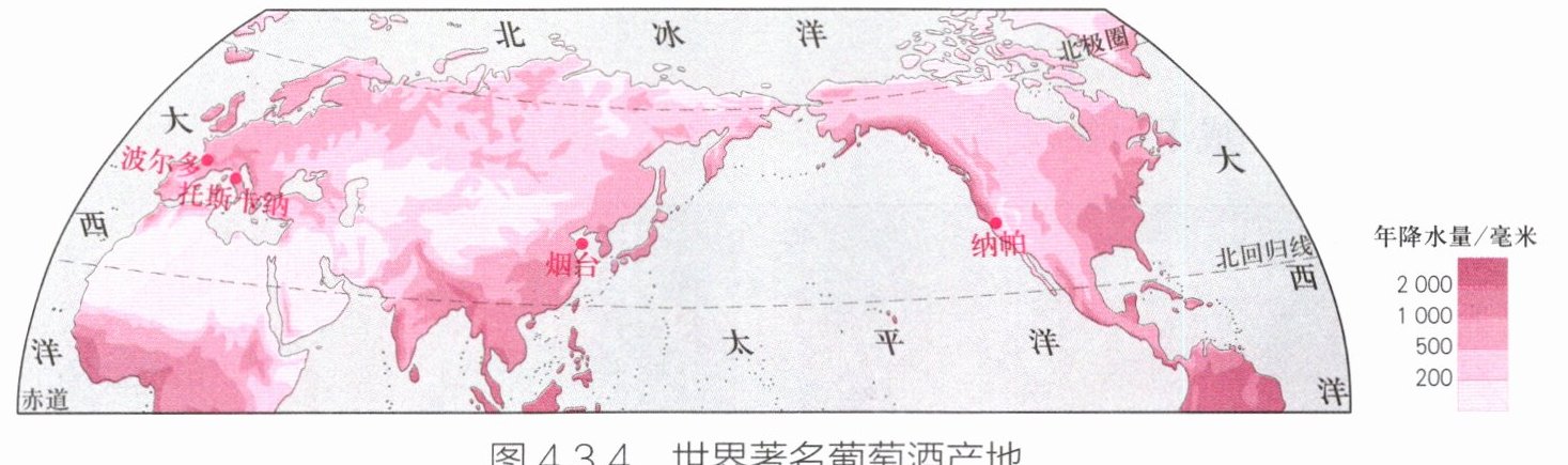 (4) 从降水的角度分析,法国波尔多有利于葡萄生长的条件是____。