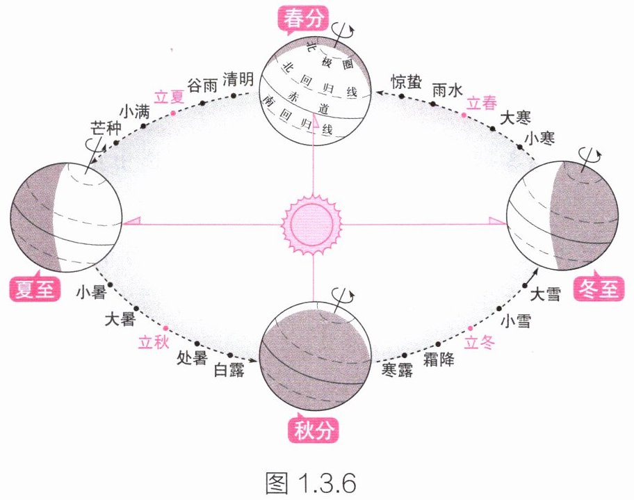 2016 年 11 月 30 日,二十四节气被正式列入联合国教科文组织人类非物质文化遗产代表作名录。读图 1.3.6,完成下列各题。