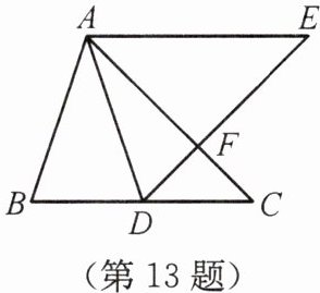 13. 如图所示,D是BC上一点,AB= AD,BC= DE,AC= AE,AC与DE交于点F,求证:∠CDE= ∠BAD。