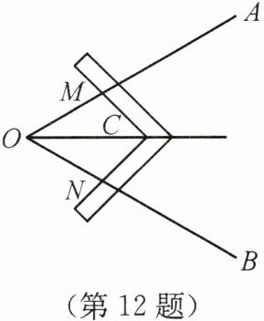 12. 工人师傅常用角尺平分一个任意角。做法如下:如图所示,∠AOB是一个任意角,在边OA,OB上分别取OM= ON,移动角尺,使角尺两边相等的刻度分别与点M,N重合,过角尺顶点C作射线OC即可得∠AOC= ∠BOC。请说明理由。
