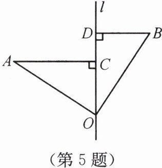 5. 如图所示,∠AOB= 90°,OA= OB,直线l经过点O,分别过A,B两点作AC⊥l于点C,BD⊥l于点D。若AC= 10,BD= 6,则CD= ______。