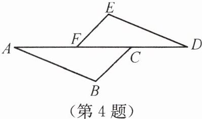 4. 如图所示,已知∠A= ∠D,EF//BC,若再添加一个适当的条件,使得△ABC≌△DEF,则添加的这个条件可以是______。(只要填上一个满足的条件即可)