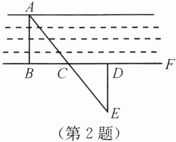 2. 如图所示,要测量河两岸相对的两点A,B的距离,先过点B作BF⊥AB,在BF上找点D,过点D作DE⊥BF,再取BD的中点C,连结AC并延长,与DE交于点E,此时测得DE的长度就是AB的长度。这里判定△ABC和△EDC全等的依据是( )
