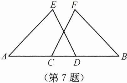 7.【衡阳】如图所示,A,C,D,B四点共线,且AC= BD,∠A= ∠B,∠ADE= ∠BCF,求证:DE= CF。