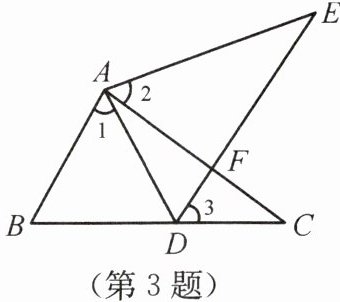 3. 如图所示,点E在△ABC外部,点D在BC边上,DE交AC于点F,如果∠1= ∠2,∠E= ∠C,AE= AC,那么 ( )