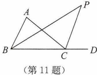 11. 如图所示,点P是△ABC的内角∠ABC与它的外角∠ACD的平分线的交点,已知点P到AC的距离为5,则点P到直线AB的距离为______。