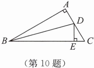 10. 如图所示,在△ABC中,∠BAC= 90°,∠ABC的平分线交AC于点D,DE⊥BC于点E,若△ABC与△CDE的周长分别为13和3,则AB的长为( )