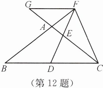 12. 如图所示,在△ABC中,AB= AC,点D在BC上,点F在BA的延长线上,FD= FC,E是AC与DF的交点,且ED= EF,FG//BC交CA的延长线于点G。