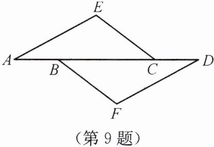 9. 如图所示,在△AEC和△DFB中,∠E= ∠F,点A,B,C,D在同一直线上,有如下三个关系式:①AE//DF;②AB= CD;③CE= BF。