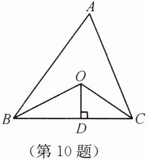 10. 如图所示,已知△ABC的周长是20,OB,OC分别平分∠ABC和∠ACB,OD⊥BC于点D,且OD= 3,则△ABC的面积是______。