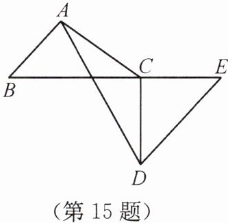 15. 如图所示,已知C为BE上一点,点A,D分别在BE两侧,AB//ED,AB= CE,BC= ED。问:△ADC是等腰三角形吗?请说明理由。
