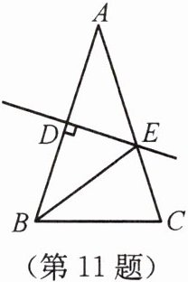 11. 如图所示,等腰三角形ABC的周长为19,底边BC= 5,AB的垂直平分线DE交AB于点D,交AC于点E,则△BEC的周长为 ( )