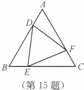 证明:$\because \triangle DEF$是等边三角形,$\therefore \angle EDF=\angle EFD=\angle DEF=60^{\circ}$,$DF=EF=DE$。$\because \triangle ABC$是等边三角形,$\therefore \angle A=\angle B=\angle C=60^{\circ}$。$\therefore \angle ADF+\angle AFD=120^{\circ}$,$\angle ADF+\angle BDE=120^{\circ}$,$\angle BDE+\angle DEB=120^{\circ}$,$\angle DEB+\angle FEC=120^{\circ}$。$\therefore \angle AFD=\angle BDE=\angle FEC$。在$\triangle ADF$和$\triangle BED$中,$\because \left\{\begin{array}{l}\angle A=\angle B,\\ \angle AFD=\angle BDE,\\ DF=ED,\end{array}\right.$$\therefore \triangle ADF\cong \triangle BED(AAS)$。$\therefore AD=BE$。同理可得$BE=CF$。$\therefore AD=BE=CF$。