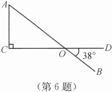 6. 如图所示,AB,CD相交于点O,AC⊥CD于点C,若∠BOD= 38°,则∠A= ______。