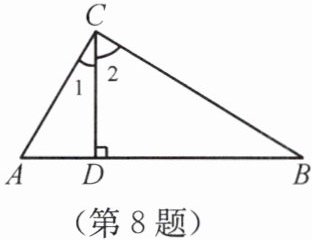 8. 如图所示,在△ABC中,∠ACB= 90°,CD是高线。