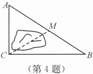 4. 如图所示,公路AC,BC互相垂直,公路AB的中点M与点C之间被湖隔开,若测得AB= 3.2km,则点M,C之间的距离是 ( )