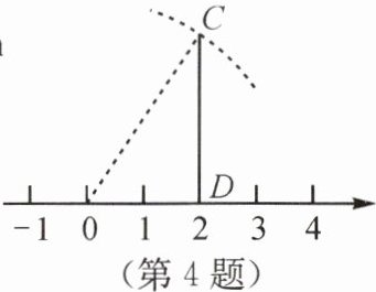 4.小明学了利用勾股定理在数轴上作一个无理数后,于是在如图所示的数轴上的2个单位长度的位置找一个点D,然后过点D作一条垂直于数轴的线段CD,CD为3个单位长度,以原点为圆心,以到点C的距离为半径作弧,交数轴于一点,则该点位置大致在数轴上 ( )