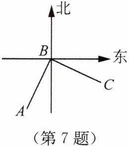 7. 如图所示,学校(记作A)在蕾蕾家(记作B)南偏西25°的方向上,且与蕾蕾家的距离是4km,若∠ABC= 90°,且AB= BC,则超市(记作C)在蕾蕾家的( )