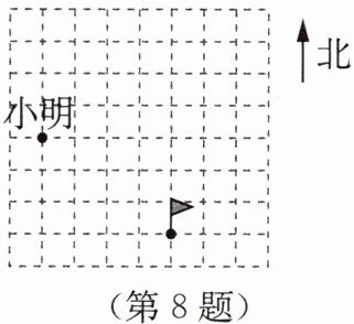 8. 小明、小华、小亮三人去看电影。如图所示为影院分布图,若分别以正东、正北方向为x轴、y轴的正方向,建立平面直角坐标系,他们这样描述自己的座位:①小明:表示我座位的坐标为(-2,3);②小华:在小明的座位向右走4个座位,再向上走2个座位,就可以找到我了;③小亮:小旗帜所在的位置就是我的座位了。小华、小亮座位的坐标分别为______。