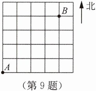 9. 常用的确定物体位置的方法有两种:一是通过建立平面直角坐标系,用坐标表示;二是通过方向和距离表示。如图所示,在5×5的边长为1的正方形组成的方格中,标有A,B两点(点A,B间的距离为n)。请你用两种不同的方法表述点B相对于点A的位置。