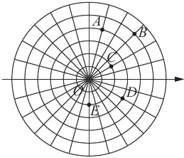 (2)请在图2中标出点B(5,45°),E(2,-90°)的位置。
