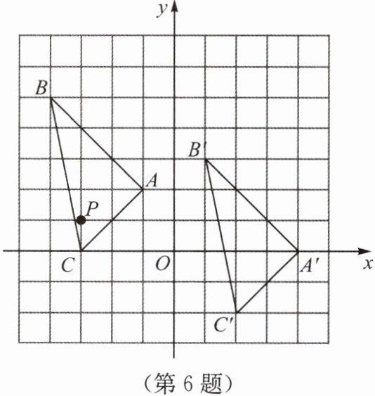 6. 如图所示,△A′B′C′是由△ABC平移得到的,已知△ABC中任意一点P(x₀,y₀)经平移后的对应点为点P′(x₀+5,y₀-2)。