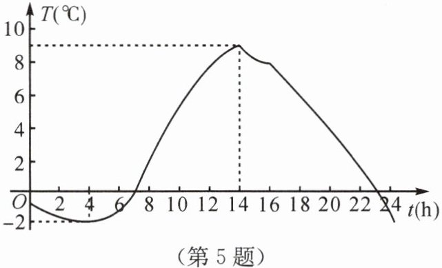 (2)由纵坐标看出最高气温是$9^{\circ }C$,温差是$9-(-2)=11(^{\circ }C)$。
