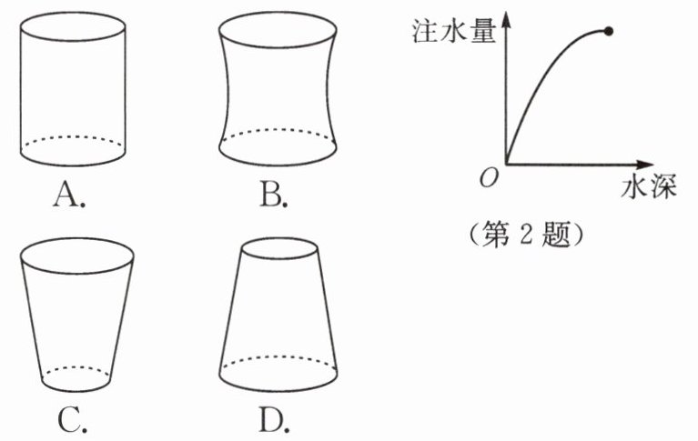 2. 向某一容器中注水,注满为止,表示注水量与水深的函数关系的图象大致如图所示,则该容器可能是( )