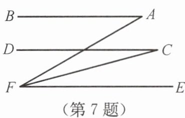 7.【绥化】如图所示,AB//CD//EF,若∠A= 30°,∠AFC= 15°,则∠C= ______。